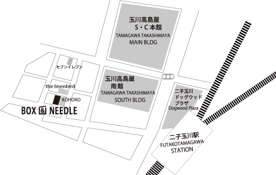 東急田園都市線『二子玉川』駅から『box and needle』への道のり。